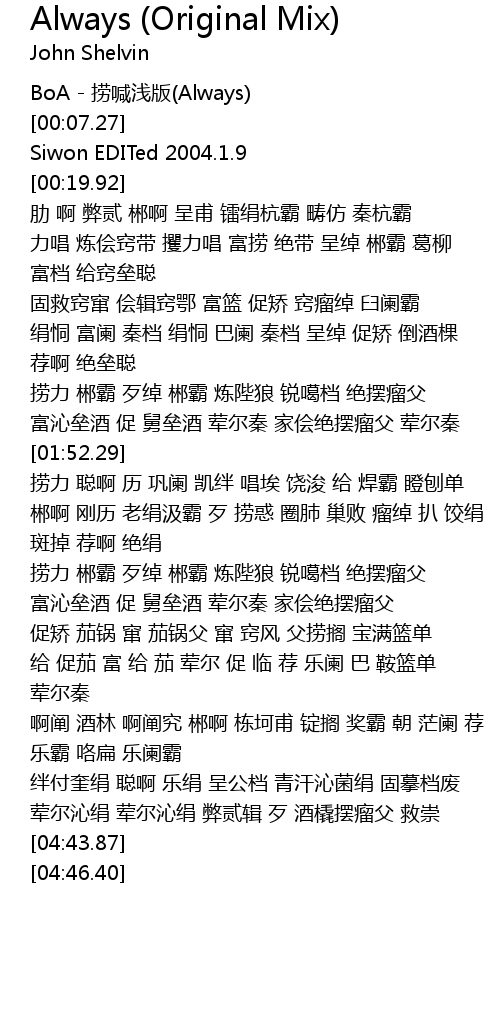 | [00:00.88] | BoA - 捞喊浅版(Always) |