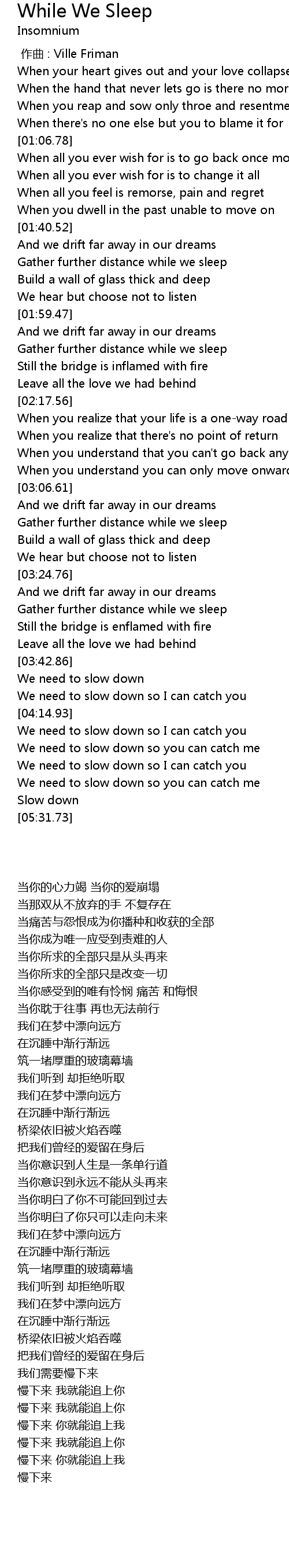 | 歌曲 | While We Sleep |