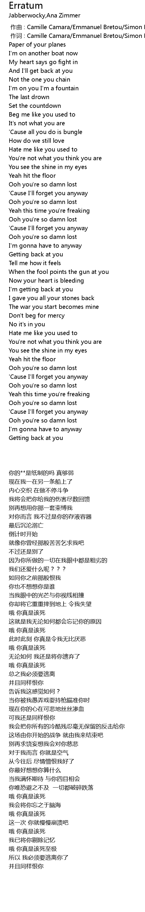 | 歌曲 | Erratum |