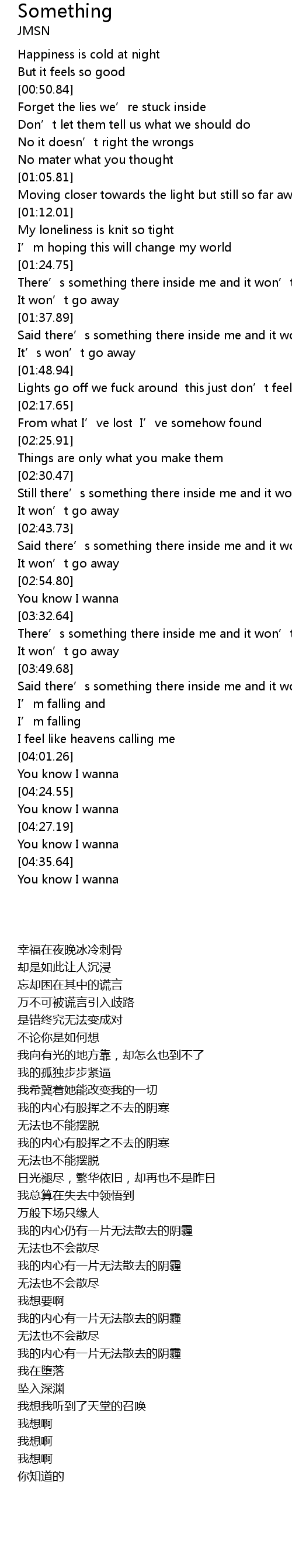 | [03:50.06] | Said there’s something there inside me and it won’t go away |
