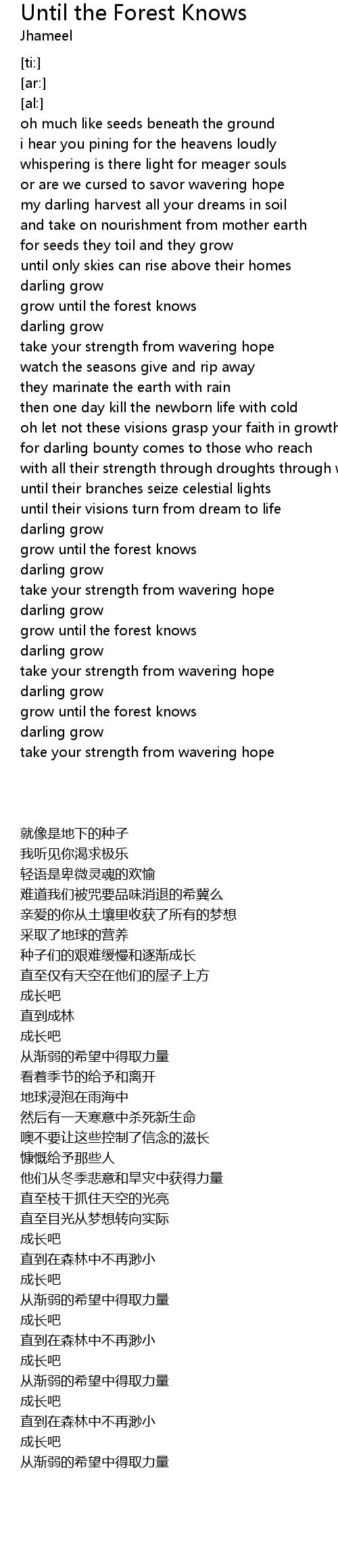 grow until the forest knows |