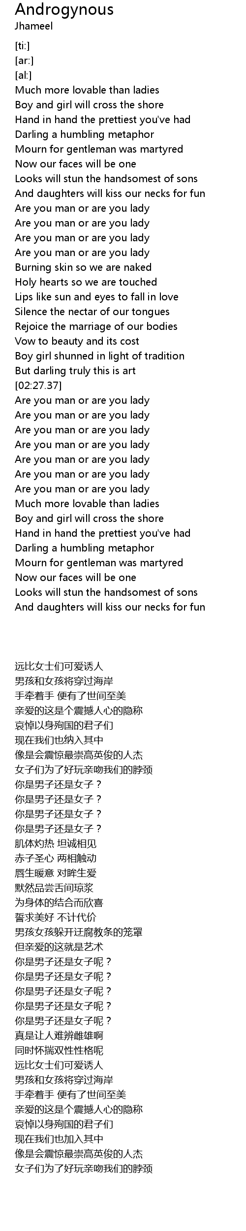 Are you man or are you lady |
