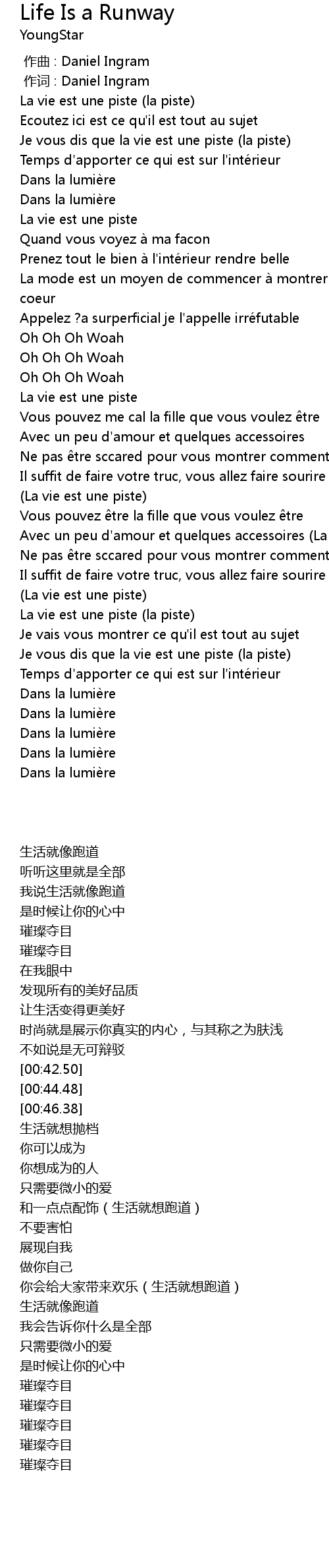 | 歌曲 | Life Is a Runway |