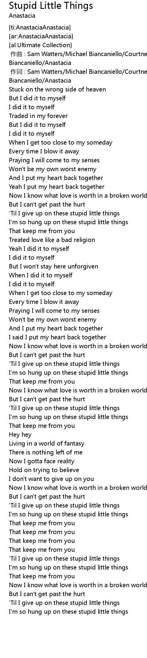 | [00:54.36] | 'Til I give up on these stupid little things |