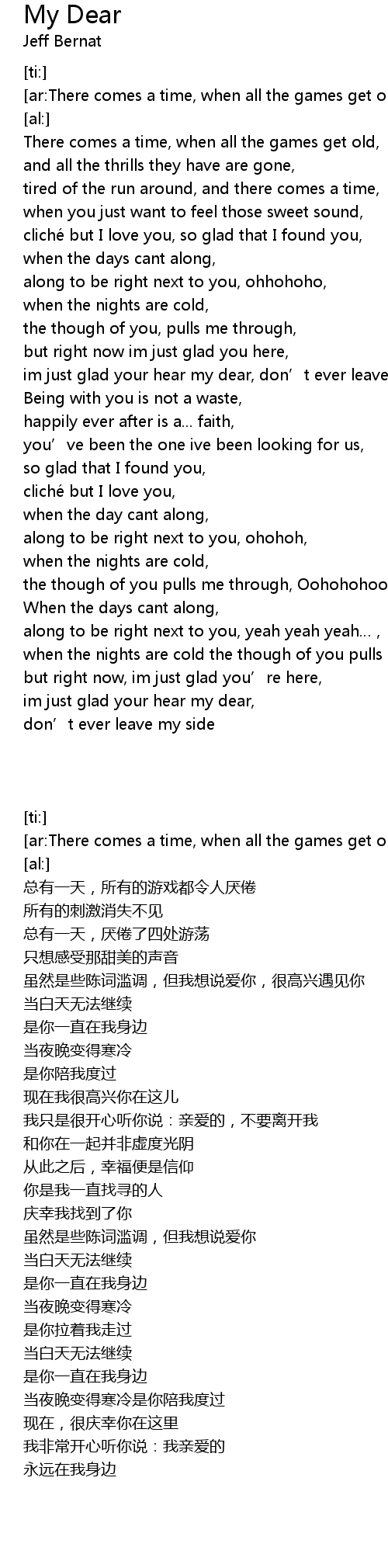 | [01:36.74] | im just glad your hear my dear, don' t ever leave my side. |