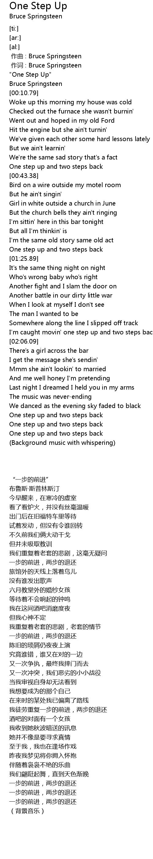 | [00:01.65] | " One Step Up" |