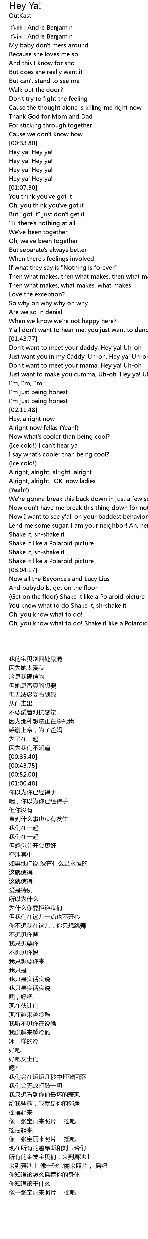 | [00:43.75] | Hey ya! Hey ya! |