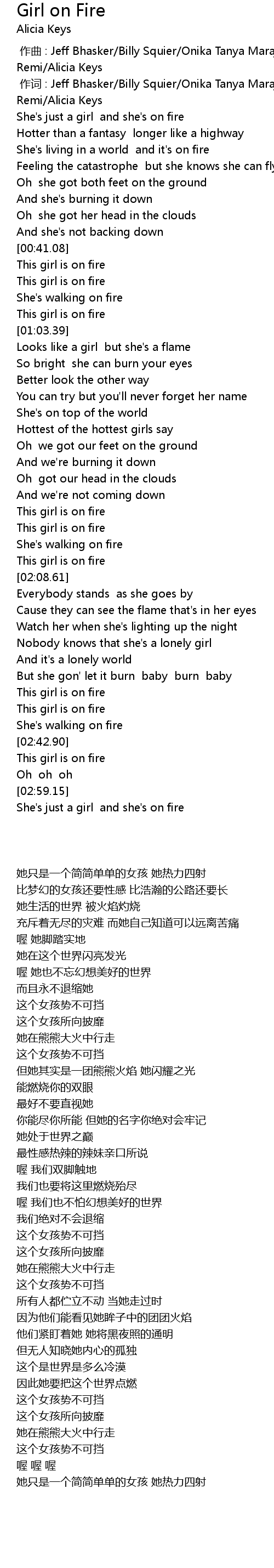 | [03:35.23] | She' s just a girl and she' s on fire |