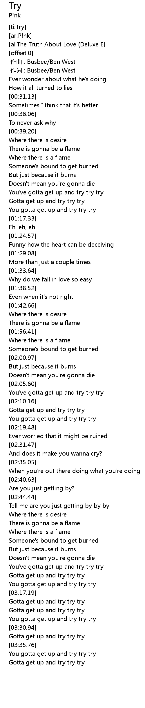 | [03:00.94] | Doesn' t mean you' re gonna die |