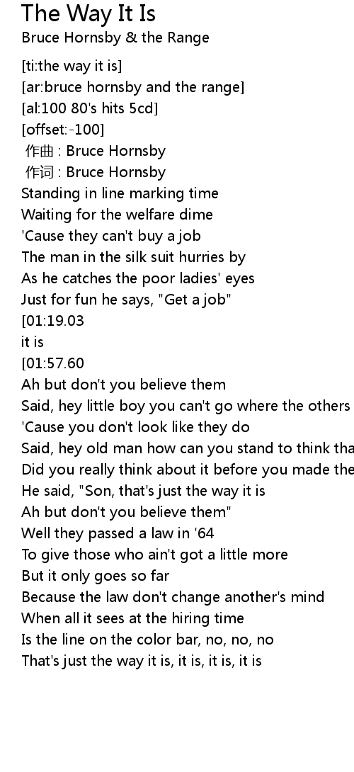 | [00:01.00] | 作词 : Bruce Hornsby |