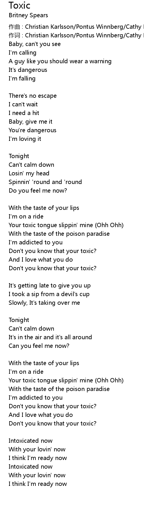 | Your toxic tongue slippin' mine Ohh Ohh | |