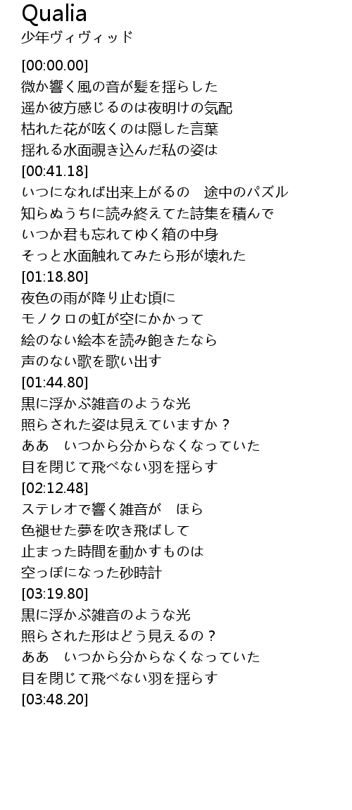 | [01:45.20] | 黒に浮かぶ雑音のような光 |