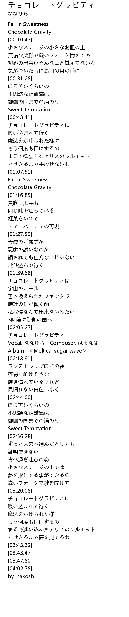 | [03:58.03][03:47.80] | Chocolate Gravity |