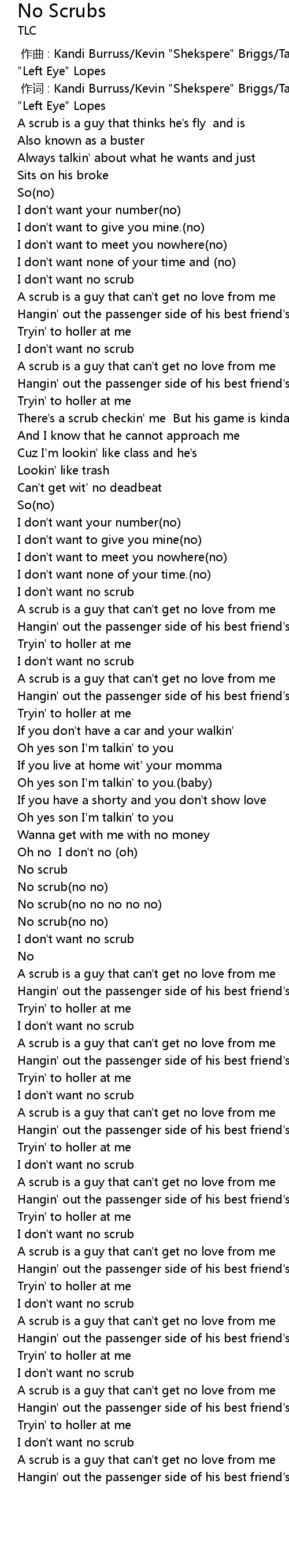 | [00:33.54] | A scrub is a guy that can' t get no love from me |