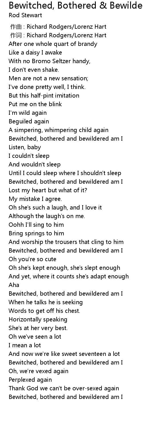 | [00:48.35] | Bewitched, bothered and bewildered am I |