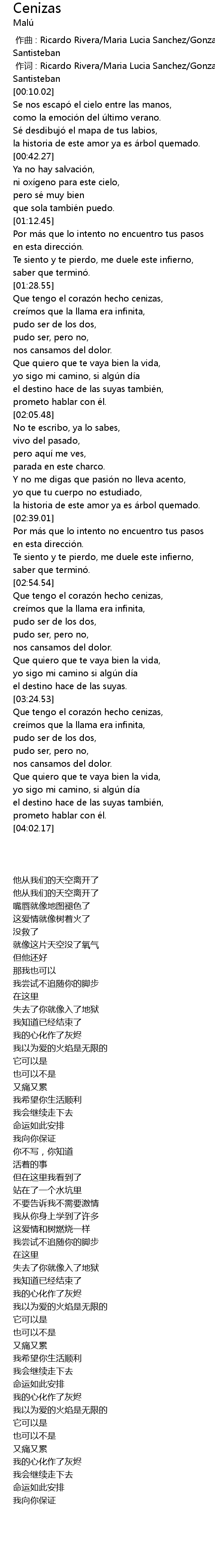 | [02:56.44] | Que tengo el corazó n hecho cenizas, |