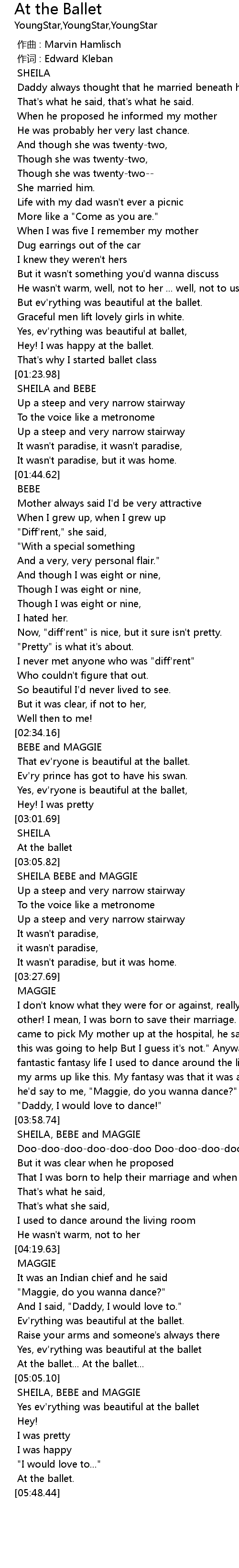 | [04:56.07] | At the ballet... At the ballet... |
