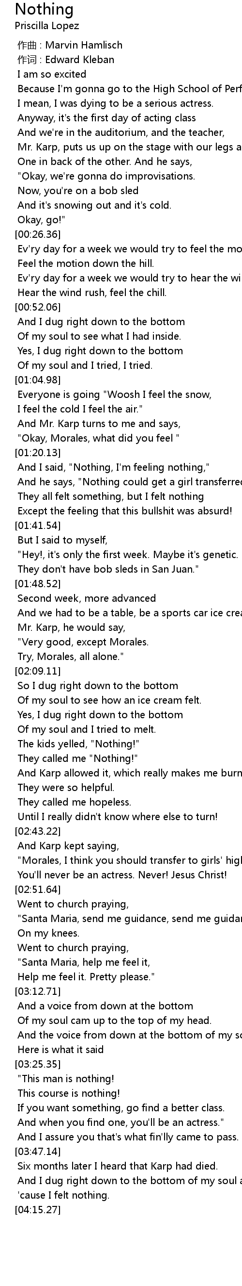 | [02:22.67] | The kids yelled, " Nothing!" |