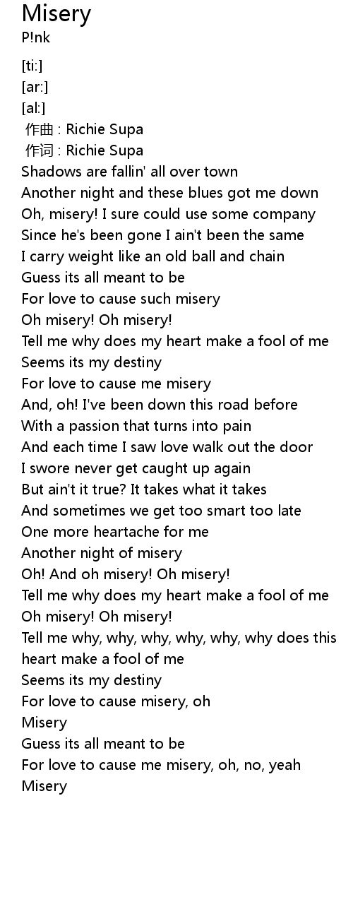 | [03:14.02] | Oh! And oh misery! Oh misery! |