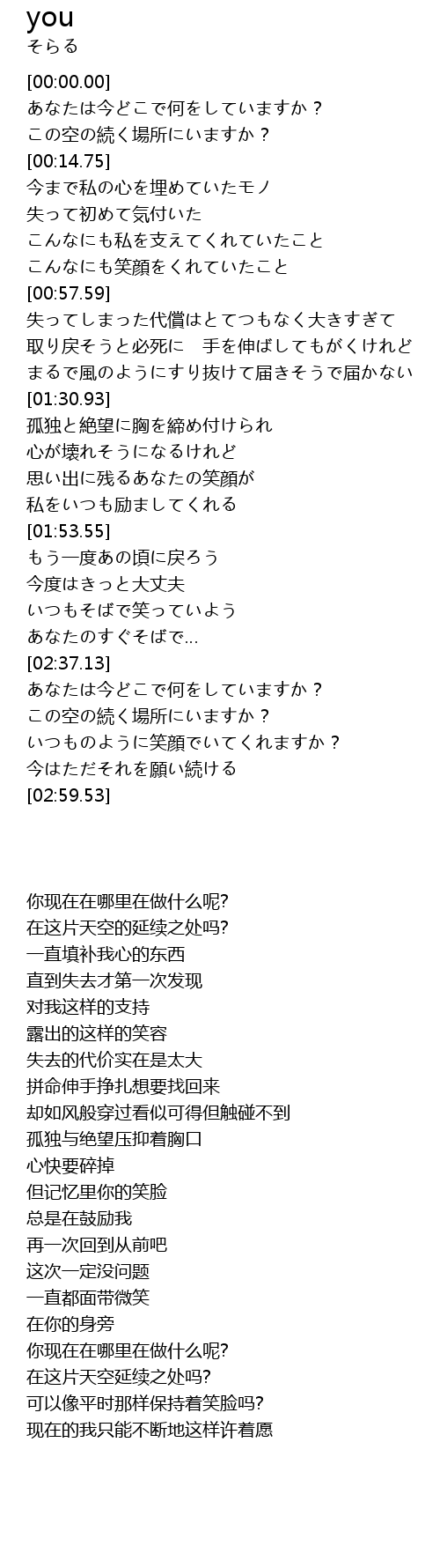 | [02:42.87] | この空の続く場所にいますか? |