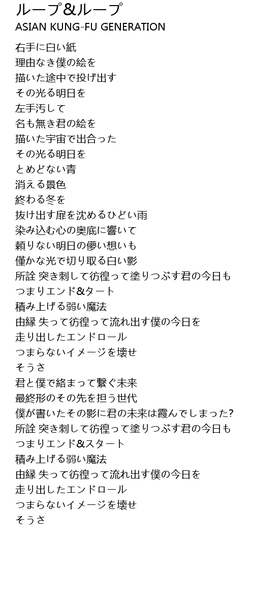 | 歌手 | ASIAN KUNG-FU GENERATION |