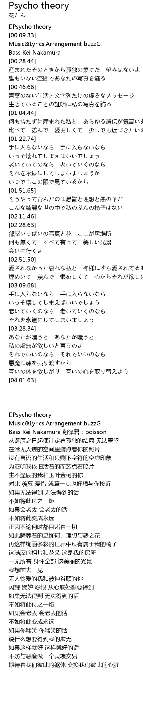 | [00:16.14] | Bass Kei Nakamura 翻译君:poisson |