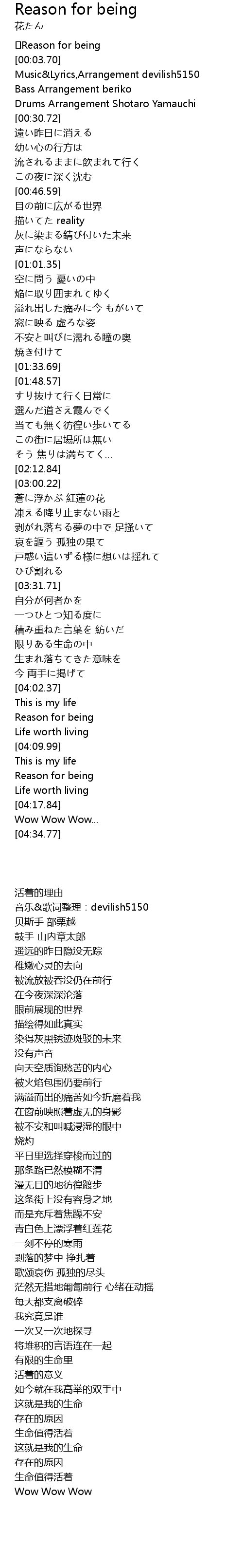 | [00:00.63] | ✿Reason for being |