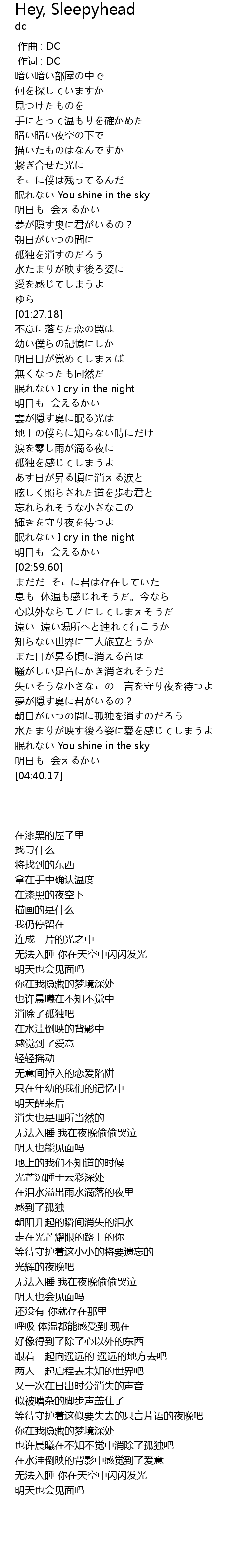 | [02:43.13] | 眠れない I cry in the night |
