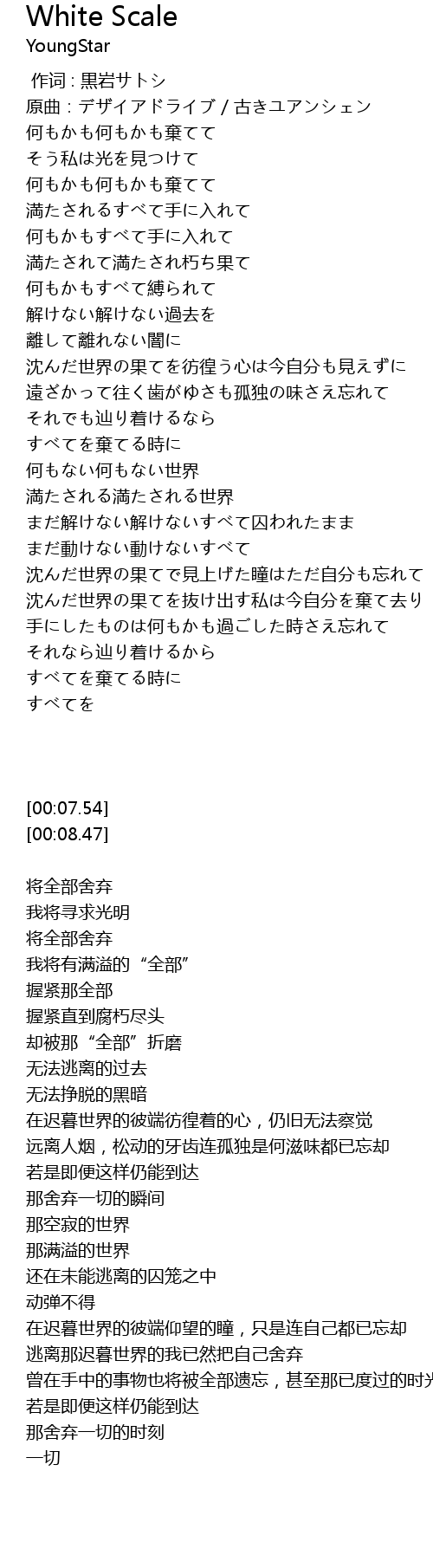 | 歌曲 | White Scale |