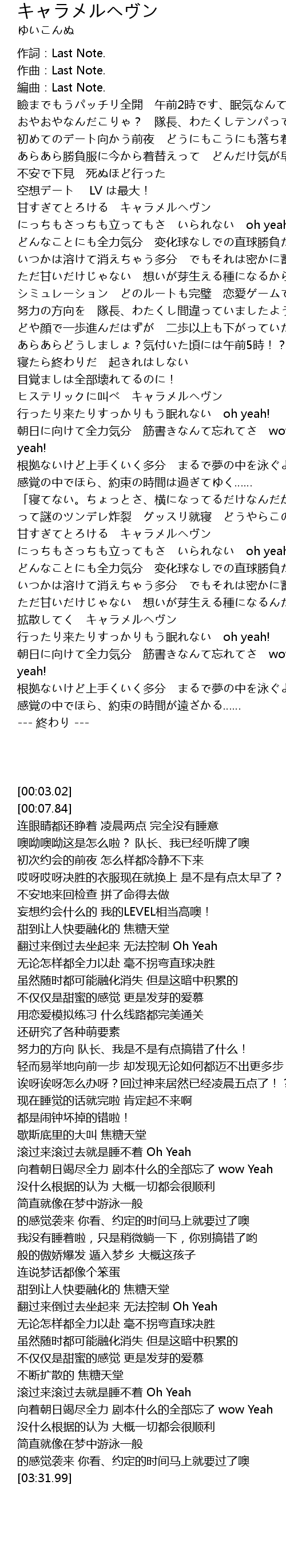 | [03:08.54] | 拡散してく キャラメルヘヴン |