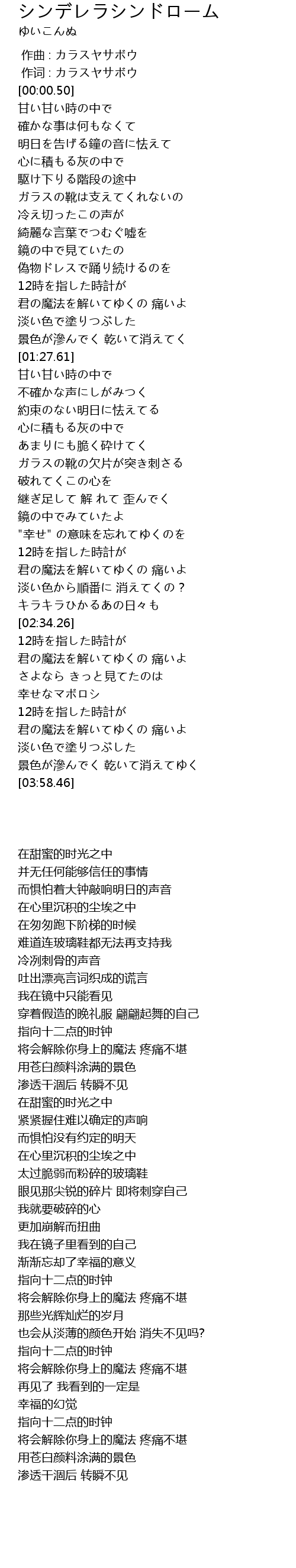 | [01:50.99] | ガラスの靴の欠片が突き刺さる |