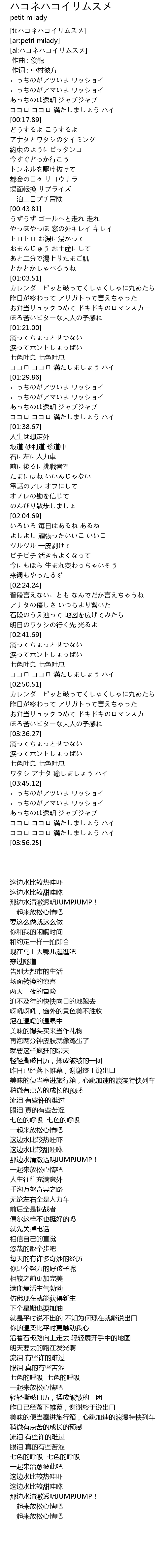 | [02:02.71] | のんびり散歩しましょ |