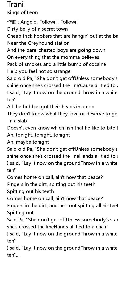 | 作曲 : Angelo, Followill, Followill | |