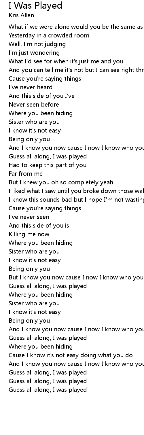 Guess all along, I was played |