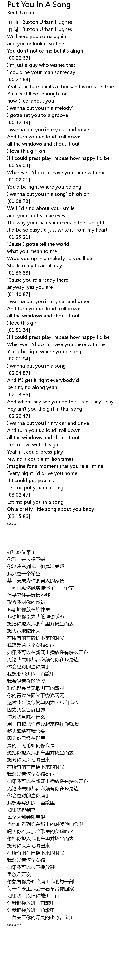 | [01:05.52] | I wanna put you in a song' oh oh oh |