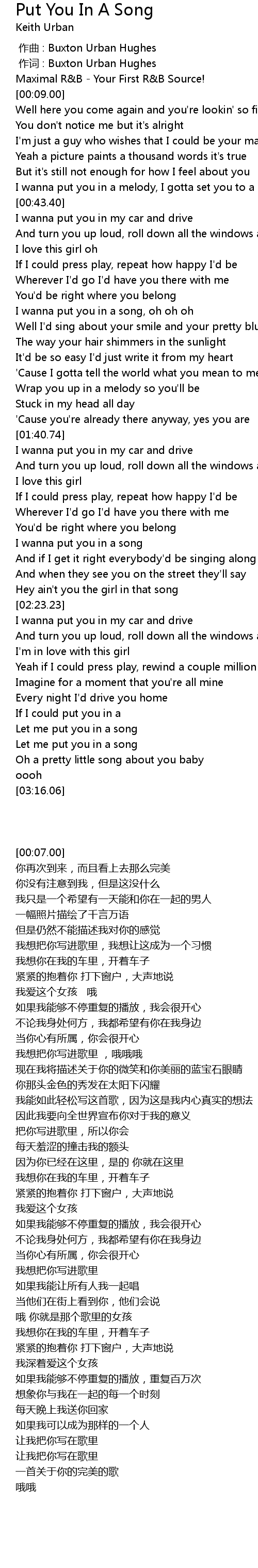 | [02:58.24] | Let me put you in a song |