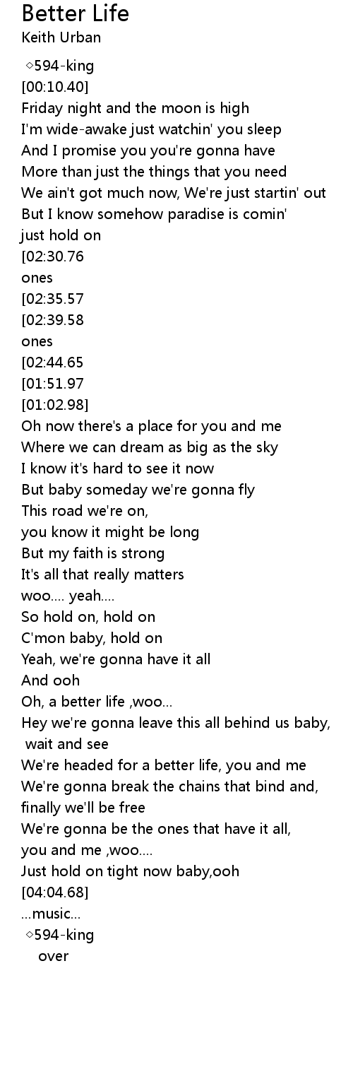 | [03:04.74][01:51.97][00:56.86] | We' re headed for a better life |