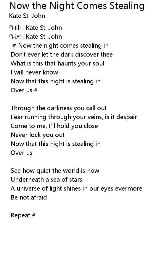 | 歌曲 | Now the Night Comes Stealing In |