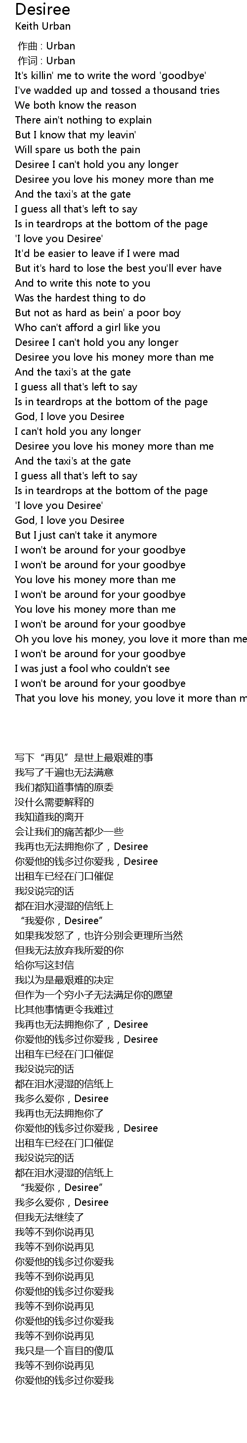 | [02:31.66] | 你爱他的钱多过你爱我,Desiree |
