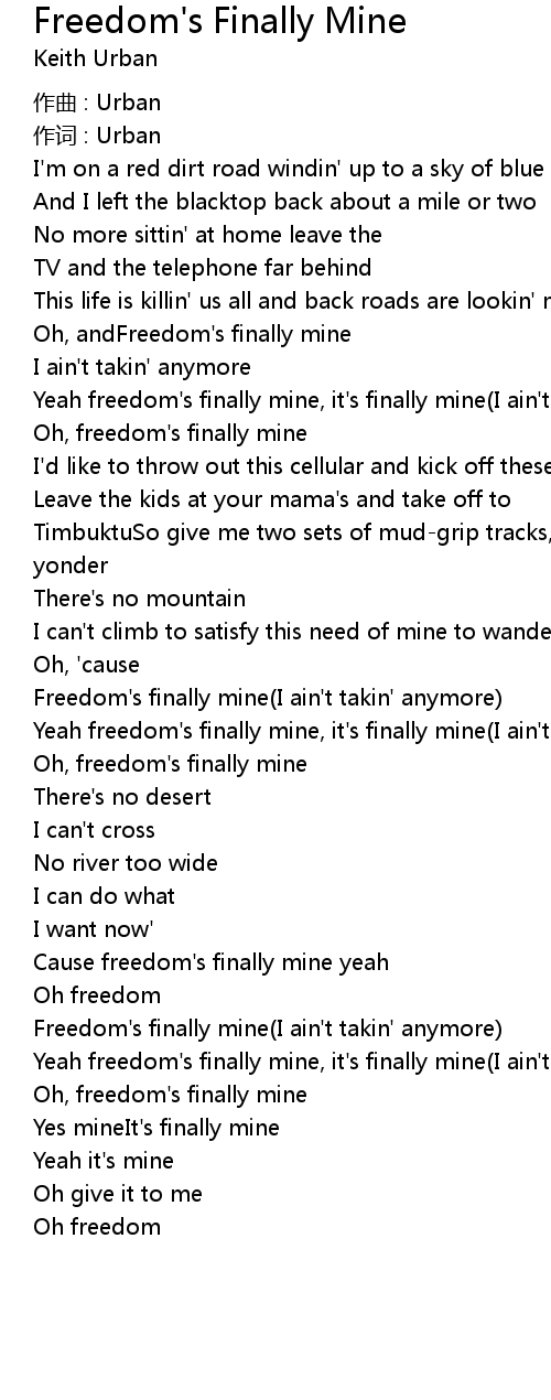 | Freedom' s finally mine I ain' t takin' anymore | |