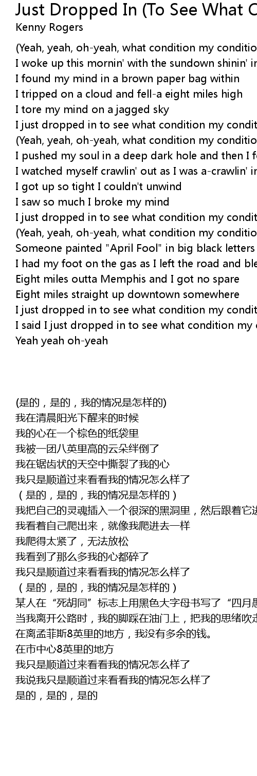 (Yeah, yeah, oh-yeah, what condition my condition was in) |