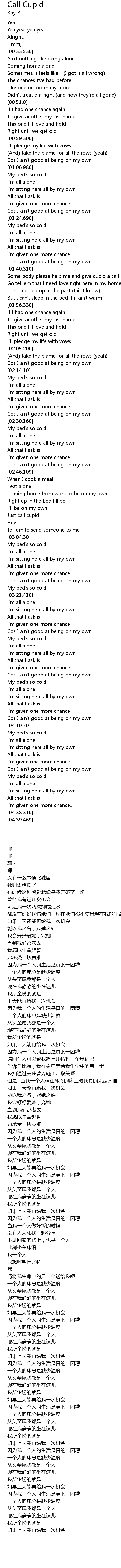 | [01:40.540] | Some body please help me and give cupid a call |