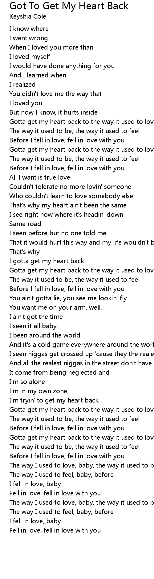 Gotta get my heart back to the way it used to love