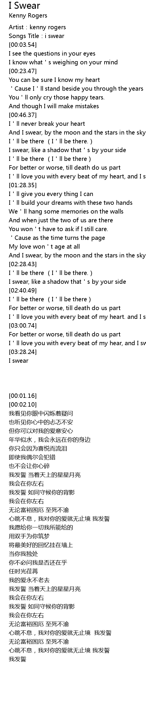 | [00:54.50] | 我发誓 当着天上的星星月亮 |