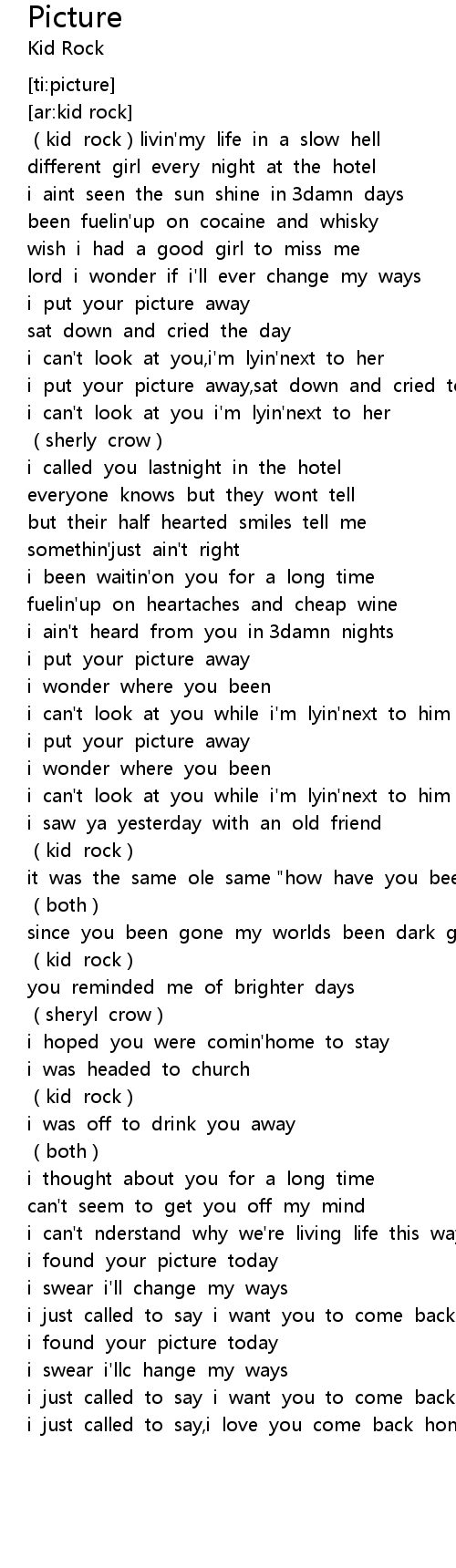 | [00:01.865] | kid rock livin' my life in a slow hell |