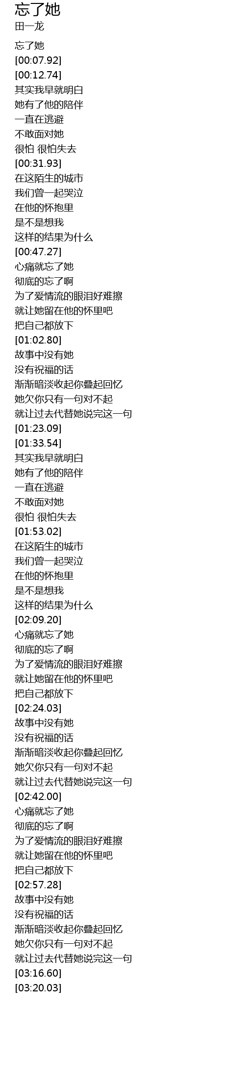 | [02:43.43] | xīn tòng jiù wàng le tā |