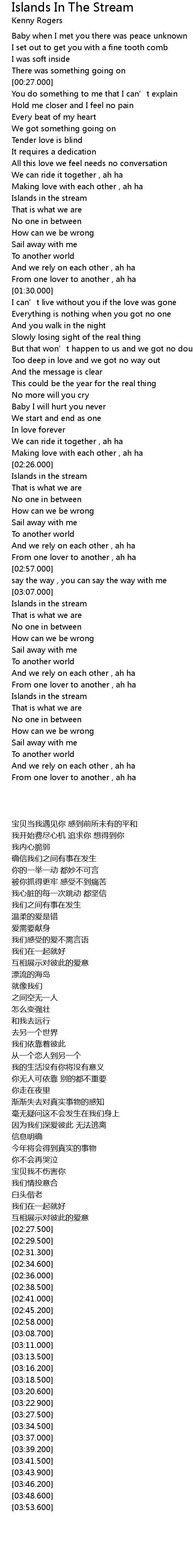 | [02:27.500] | Islands in the stream |