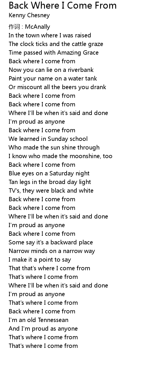 | 歌曲 | Back Where I Come From |