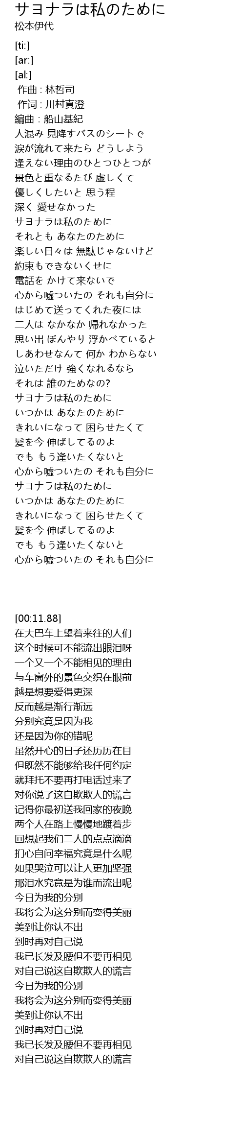 | [03:26.63] | サヨナラは私のために |