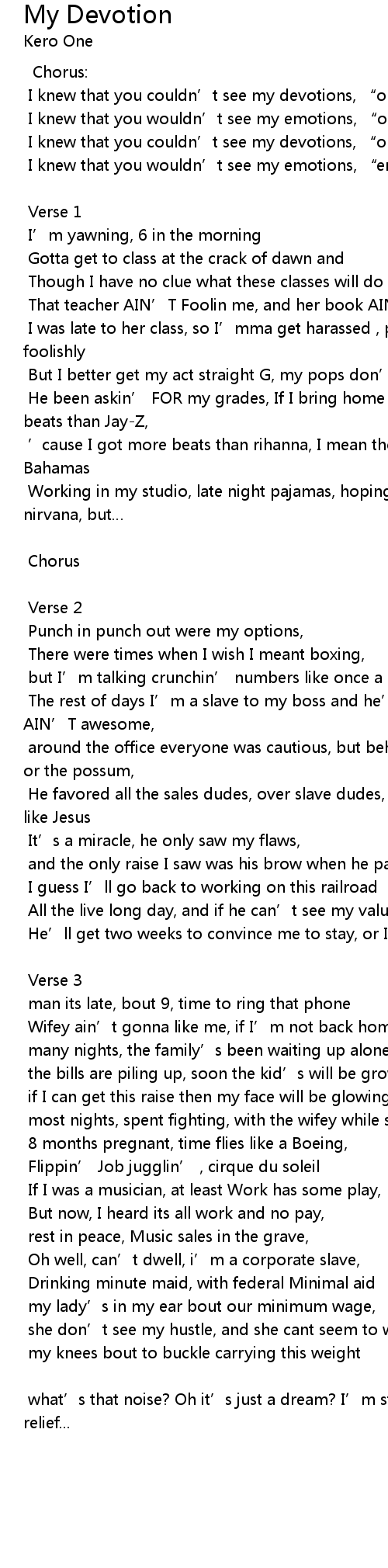 | I knew that you couldn' t see my devotions, " oh oh oh ohhh" | |